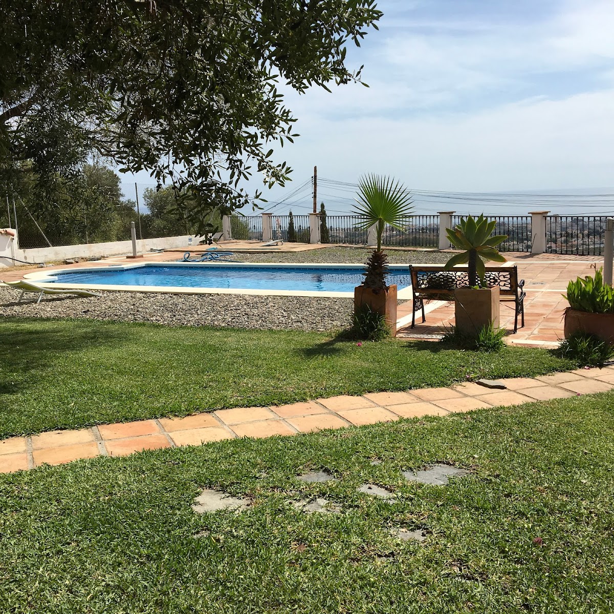 Casa Rural Carpe Diem befindet sich auf einem Bergrücken oberhalb von Torremolinos in Churriana, einem Stadtteil von Malaga. Der Flughafen Malaga ist nur knapp 10 Autominuten entfernt. Die Aussicht ist grandios. Ebenso die Ruhe hier. Das Klima ist in den Sommermonaten aufgrund der hier oben fast ständig wehenden Winde noch gut erträglich, abends kann es auch schon mal etwas kühl sein. Der große Pool macht einen Strandbesuch (ca15 min Fahrt) fast unnötig. Der Verwalter spricht auch englisch und ist bei Problemen sofort zur Stelle. Der Pool wird 2x pro Woche gepflegt. Es gibt viele schattige Plätze in dem liebevoll gepflegten Garten mit seinen großen Olivenbäumen und eine wunderschöne schattige Terrasse. Wlan ist fast im ganzen Areal verfügbar. Casa Rural Carpe Diem ist empfehlenswert für Individualisten, Leute, die mal richtig abschalten wollen, sich gern auch mal selbst versorgen. In der Küche ist alles, was man braucht, auch eine Waschmaschine. Zwei große Supermärkte sind in der Nähe (wenige Minuten), doch ebenso 2 Restaurants, "Los Pinos del Coto" und die Pizzeria "Bella Vista", auch einige kleine Lokale, u.a. eine Tapas-Bar kurz nach dam Kreisel gegenüber dem Camino de la Sierra. Casa Rural Carpe Diem ist ideal für 2 Personen, die auch mal mit einem etwas kleinerem Bett (ca. 1,4m breit) klar kommen. Ein Mietwagen ist aufgrund der bergigen Lage in jedem Fall mehr als empfehlenswert.